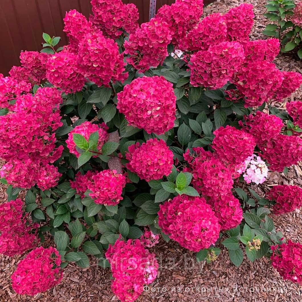 Данный сорт произвел фурор в мире метельчатых гортензий своим ярко-насыщенным окрасом, компактным размером и плотностью побегов, которые имеют красноватую расцветку. Сортовой куст прекрасно держит правильную и аккуратную форму, не разваливаясь.